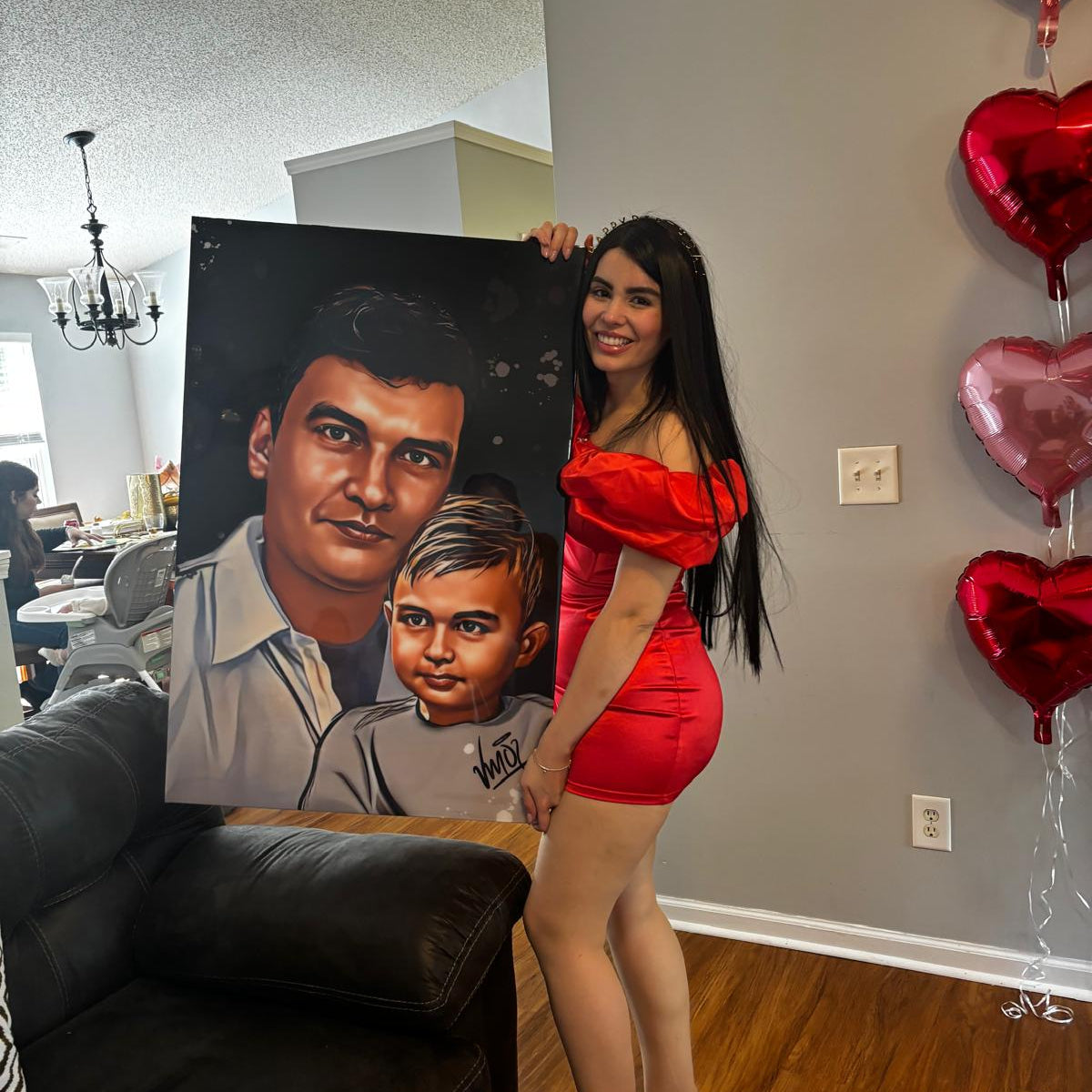 Transformamos tus fotografías en obras de arte únicas. Con esta opción, podemos unir artísticamente a personas que ya no están junto con nosotros, creando un resultado final natural y armonioso. Cada detalle es intervenido cuidadosamente para lograr una composición elegante, emotiva y personalizada, perfecta para honrar recuerdos y momentos especiales.